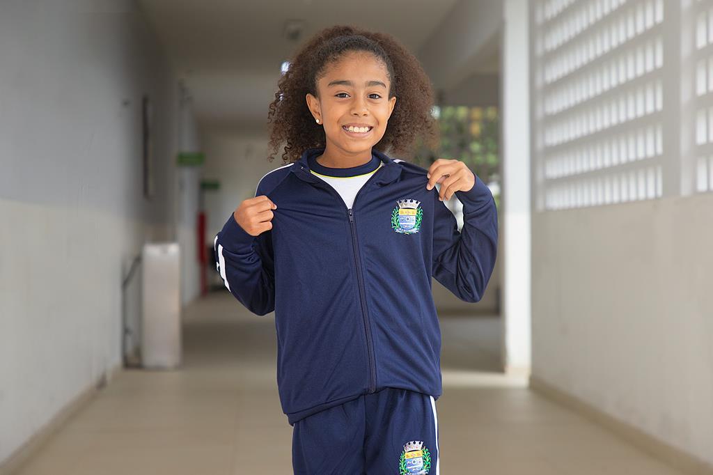 Além do material escolar, os estudantes recebem o kit de uniforme, composto por calça, duas bermudas, jaqueta, três camisetas, uma regata, uma camiseta de mangas longas e três pares de meias.