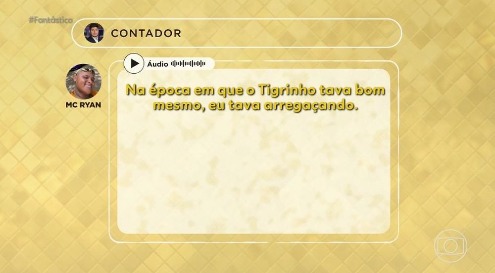 "Nunca é bom falar dos resultados das plataformas, tá ligado? Na época do Tigrinho tava bom mesmo, eu tava arregaçando", disse MC Ryan ao contador Rodrigo Morgado, em áudio revelado pelo Fantástico.
