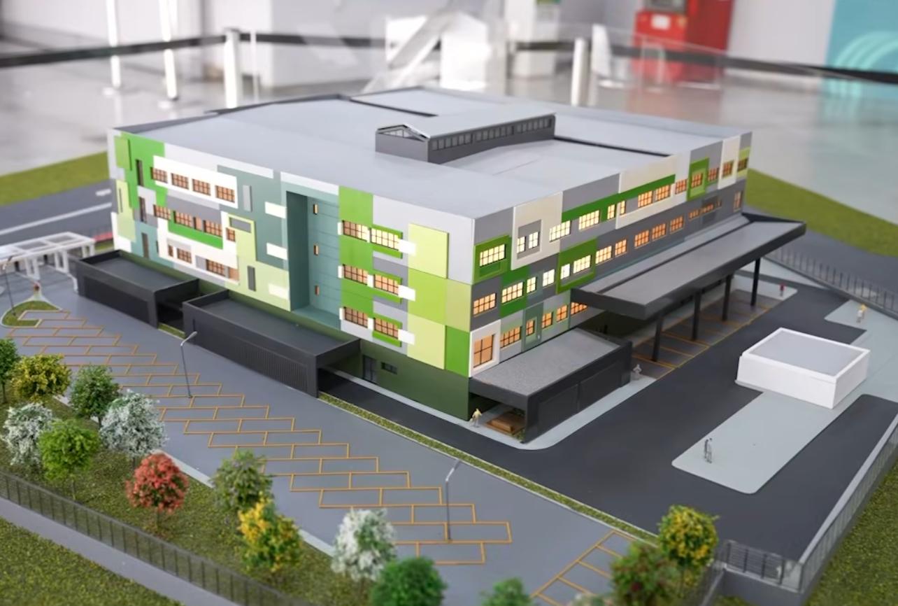 O prédio da nova maternidade terá 11.500 metros quadrados, com 4 andares, 20 quartos, 9 consultórios, 13 salas pré-parto, parto cirúrgico, parto humanizado, berçários e 21 box de internação.