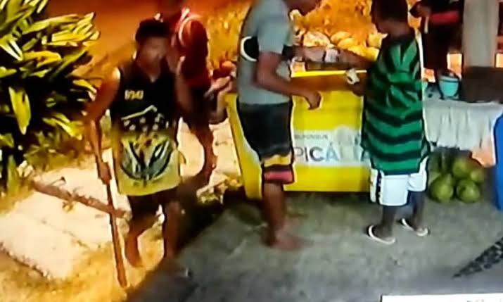 As imagens mostram que as agressões começam depois de uma discussão entre um homem que segura um pedaço de pau e o congolês, que levanta objetos do quiosque como uma cadeira e um cabo de vassoura.